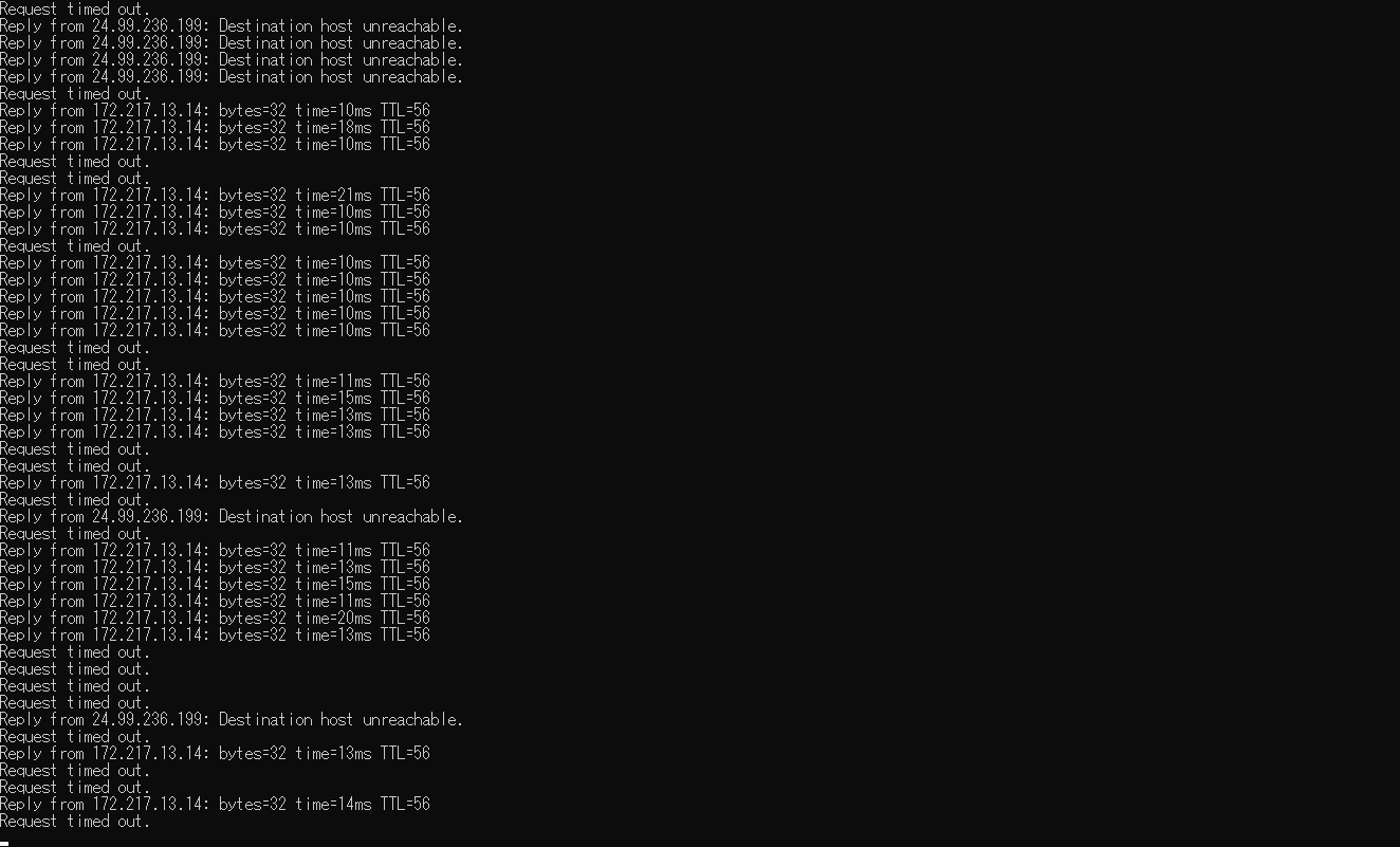Someone down the road took this screencap of a ping test they attempted, mine looks pretty much the same when I run it: