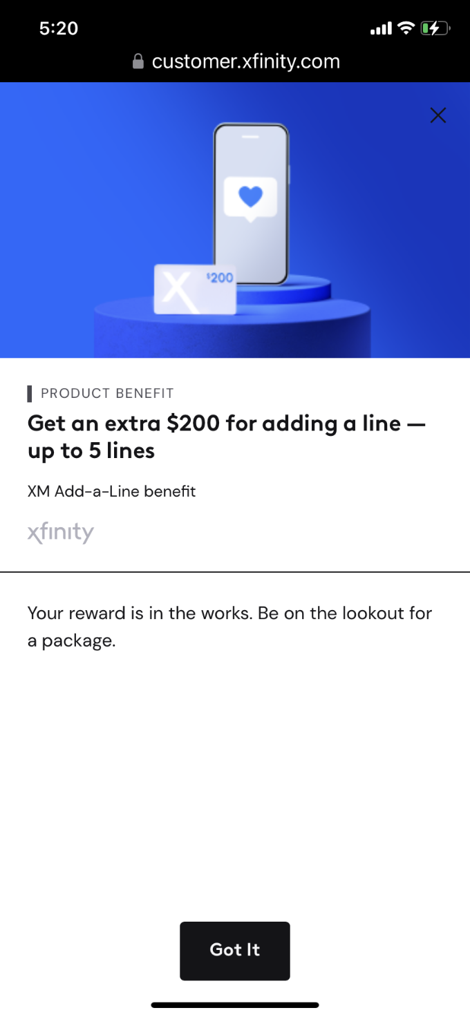 XM Add-a-Line benefit $200 Reward